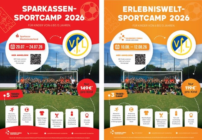2026 finden wieder zwei Sportcamps in Kooperation mit dem VfL Senden der Erlebniswelt Fußball statt! 🥳